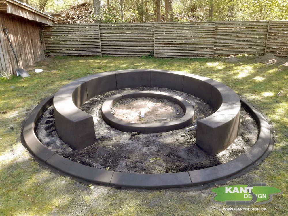 On this fire pit is cast 30×30 cm in charcoal gray concrete bench.